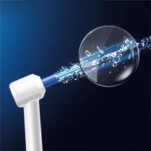 Air-enriched water with micro-bubbles removes bacteria and plaque on contact.