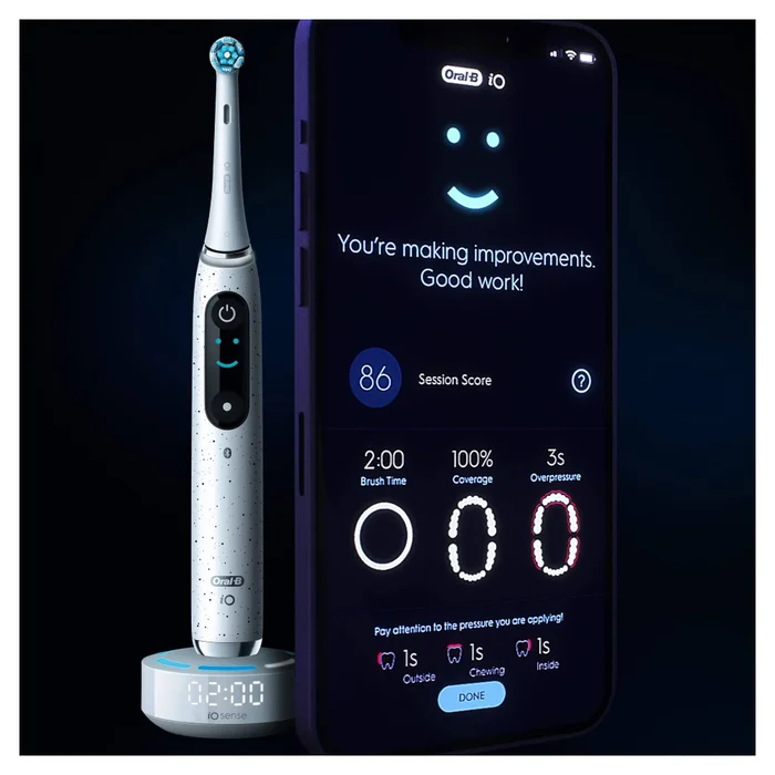 iO Sense™ Smart Charger personalises your clean with live coaching to guide how, when and where you brush.